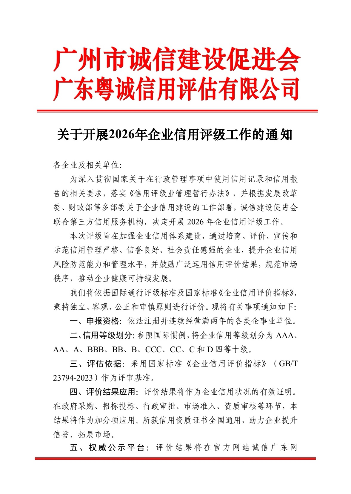 关于开展2026年企业信用评级工作的通知