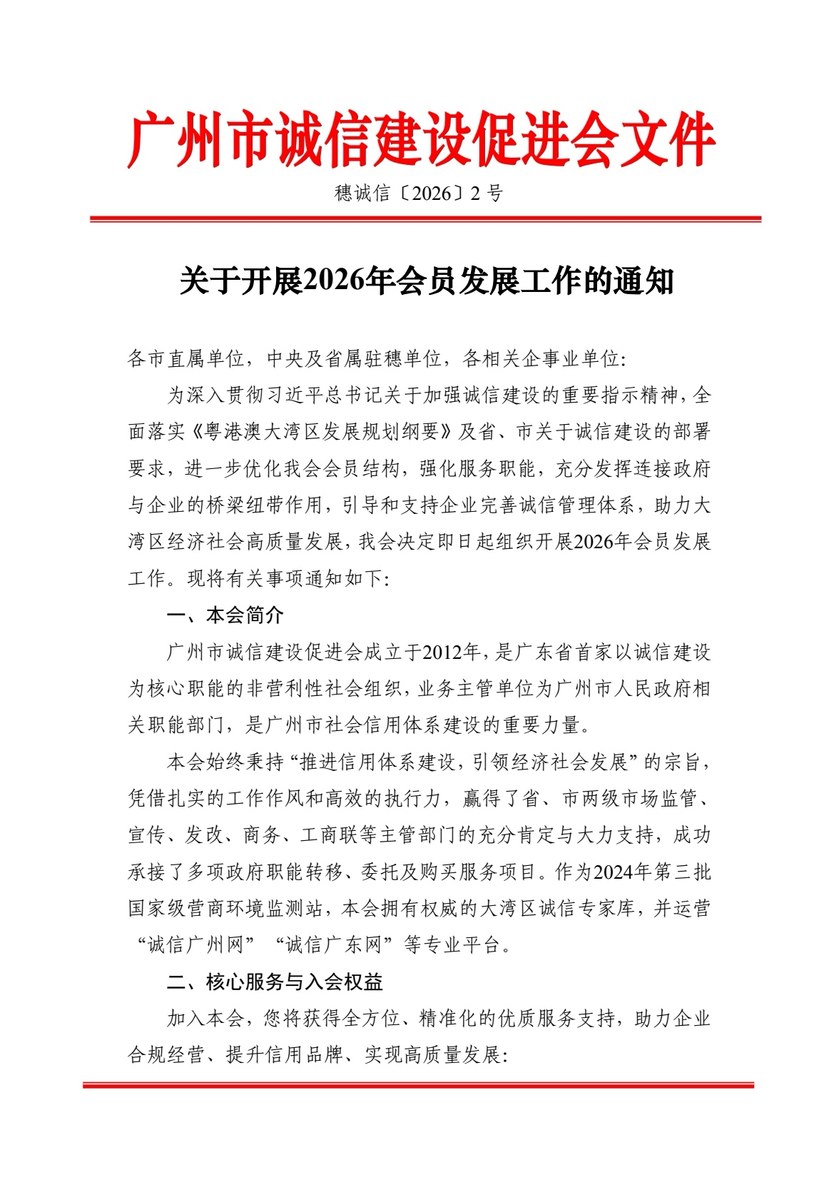 关于开展2026年会员发展工作的通知